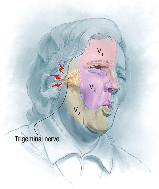 三叉神经位于颅内,起于脑桥为混合神经含有躯体感觉和内脏运动纤维。躯体感觉神经纤维组成粗大的感觉根,分布于头面部皮肤、眼、鼻、口腔黏膜、牙和牙龈,以及脑膜等处,传导痛、温、触觉。