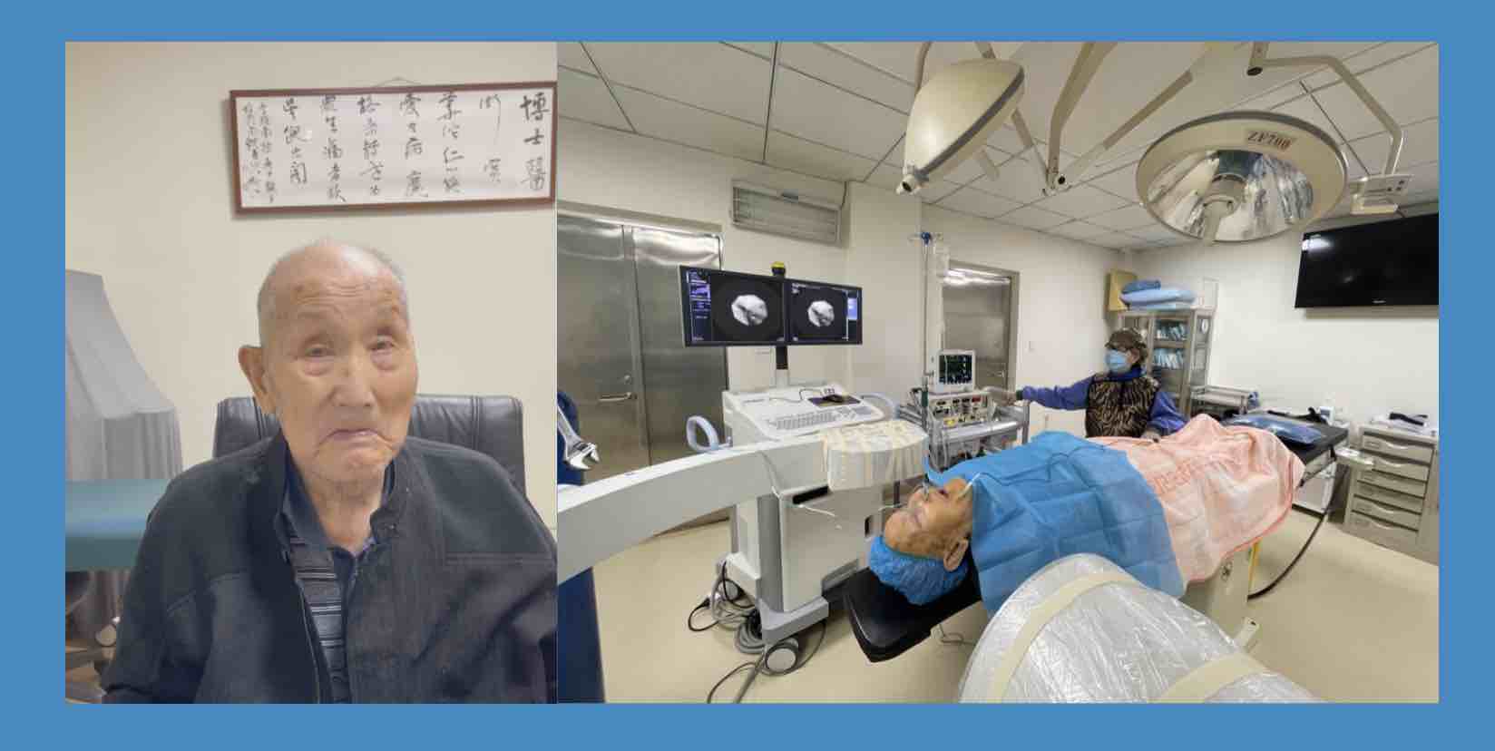 2021年7月14日我们为来自黑龙江的三叉神经痛患者赵老先生成功实施了第一支(眼支)和第二支(上颌支)的治疗。赵老以98岁高龄打破了傅奶奶97岁的记录!